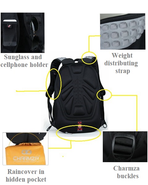 – Sunglasses holder elastic tab on shoulder strap keeps sunglasses securely and conveniently accessible